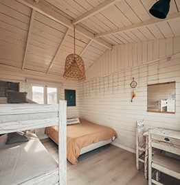 La capacidad para cada bugalow puede ser de 1, 2, 3, 4 y 4+1 personas. El 4+1 hace referencia a 4 adultos y un